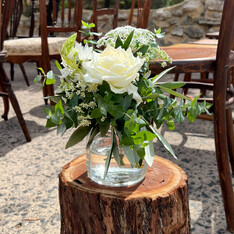 We encourage you to repurpose your wedding flowers! The concept of taking your ceremony flowers to reuse at your reception saves money and reduces waste. Flower posies in jars that were used to decorate the aisle work perfectly on cocktail tables and the arbor flowers can be relocated to become an impressive statement piece at the reception.